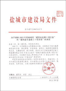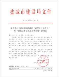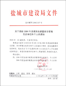 2004年鹽城市質量、安全先進